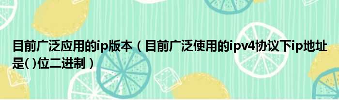 大家好,今天小六子来为大家解答以下的问题,关于目前广泛应用的ip版本,目前广泛使用的ipv4协议下ip地址是( )位二进制这个很多人还不知道,现在让我们一起来看看吧!