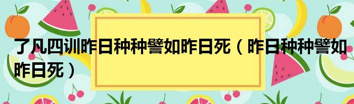 大家好,今天小六子来为大家解答以下的问题,关于了凡四训昨日种种譬如昨日死,昨日种种譬如昨日死这个很多人还不知道,现在让我们一起来看看吧!