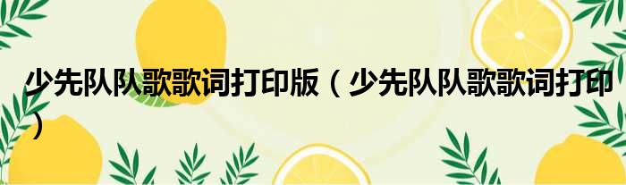 大家好,今天小六子来为大家解答以下的问题,关于少先队队歌歌词打印版,少先队队歌歌词打印这个很多人还不知道,现在让我们一起来看看吧!