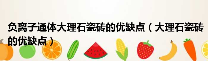 大家好,今天小六子来为大家解答以下的问题,关于负离子通体大理石瓷砖的优缺点,大理石瓷砖的优缺点这个很多人还不知道,现在让我们一起来看看吧!