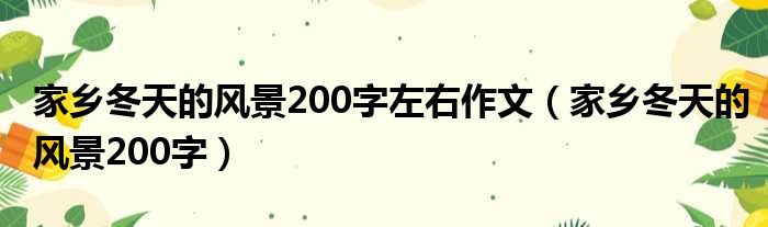 大家好,今天小六子来为大家解答以下的问题,关于家乡冬天的风景200字左右作文,家乡冬天的风景200字这个很多人还不知道,现在让我们一起来看看吧!