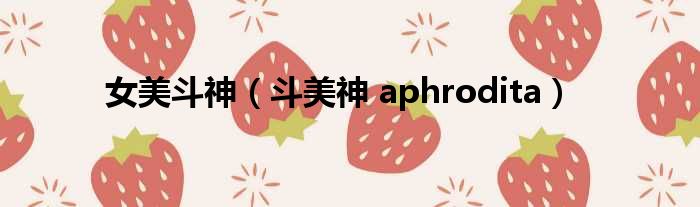 大家好,今天小六子来为大家解答以下的问题,关于女美斗神,斗美神 aphrodita这个很多人还不知道,现在让我们一起来看看吧!