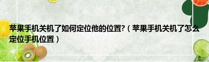 大家好,今天小六子来为大家解答以下的问题,关于苹果手机关机了如何定位他的位置?,苹果手机关机了怎么定位手机位置这个很多人还不知道,现在让我们一起来看看吧!