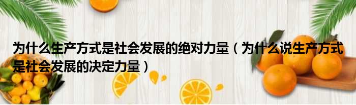 大家好,今天小六子来为大家解答以下的问题,关于为什么生产方式是社会发展的绝对力量,为什么说生产方式是社会发展的决定力量这个很多人还不知道,现在让我们一起来看看吧!