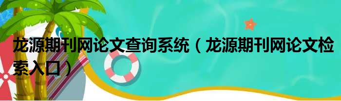 大家好,今天小六子来为大家解答以下的问题,关于龙源期刊网论文查询系统,龙源期刊网论文检索入口这个很多人还不知道,现在让我们一起来看看吧!