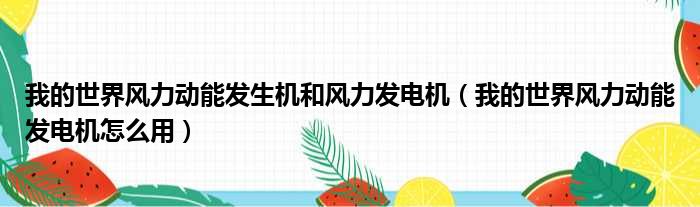 大家好,今天小六子来为大家解答以下的问题,关于我的世界风力动能发生机和风力发电机,我的世界风力动能发电机怎么用这个很多人还不知道,现在让我们一起来看看吧!