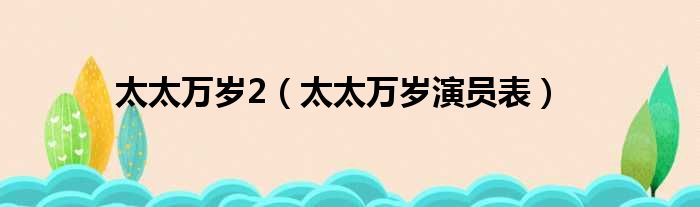 大家好,今天小六子来为大家解答以下的问题,关于太太万岁2,太太万岁演员表这个很多人还不知道,现在让我们一起来看看吧!
