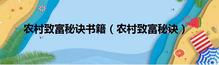 大家好,今天小六子来为大家解答以下的问题,关于农村致富秘诀书籍,农村致富秘诀这个很多人还不知道,现在让我们一起来看看吧!