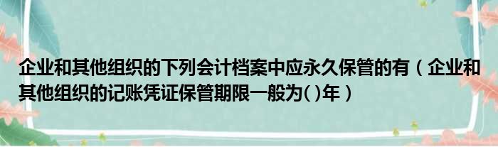 大家好,今天小六子来为大家解答以下的问题,关于企业和其他组织的下列会计档案中应永久保管的有,企业和其他组织的记账凭证保管期限一般为( )年这个很多人还不知道,现在让我们一起来看看吧!