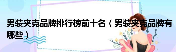 大家好,今天小六子来为大家解答以下的问题,关于男装夹克品牌排行榜前十名,男装夹克品牌有哪些这个很多人还不知道,现在让我们一起来看看吧!