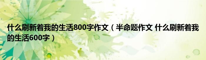 大家好,今天小六子来为大家解答以下的问题,关于什么刷新着我的生活800字作文,半命题作文 什么刷新着我的生活600字这个很多人还不知道,现在让我们一起来看看吧!