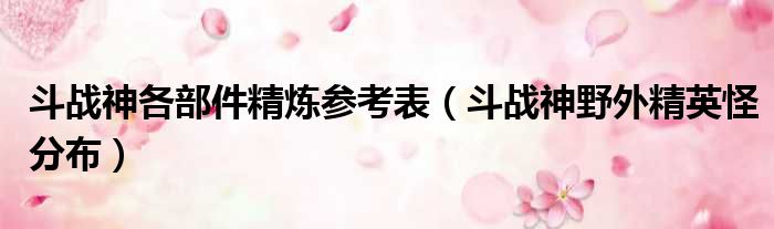 大家好,今天小六子来为大家解答以下的问题,关于斗战神各部件精炼参考表,斗战神野外精英怪分布这个很多人还不知道,现在让我们一起来看看吧!
