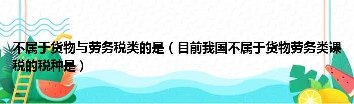 大家好,今天小六子来为大家解答以下的问题,关于不属于货物与劳务税类的是,目前我国不属于货物劳务类课税的税种是这个很多人还不知道,现在让我们一起来看看吧!