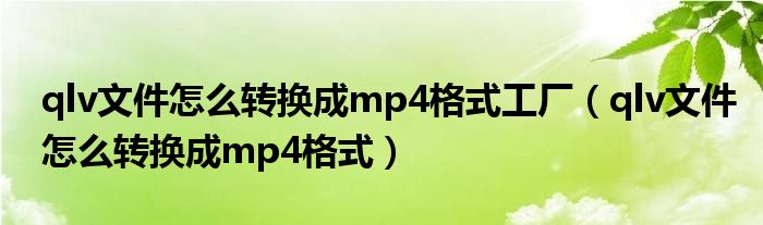 大家好,今天小六子来为大家解答以下的问题,关于qlv文件怎么转换成mp4格式工厂,qlv文件怎么转换成mp4格式这个很多人还不知道,现在让我们一起来看看吧!
