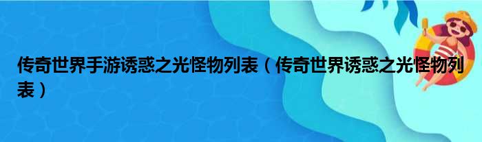 大家好,今天小六子来为大家解答以下的问题,关于传奇世界手游诱惑之光怪物列表,传奇世界诱惑之光怪物列表这个很多人还不知道,现在让我们一起来看看吧!