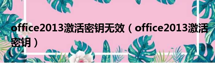 大家好,今天小六子来为大家解答以下的问题,关于office2013激活密钥无效,office2013激活密钥这个很多人还不知道,现在让我们一起来看看吧!