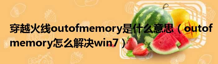 大家好,今天小六子来为大家解答以下的问题,关于穿越火线outofmemory是什么意思,outofmemory怎么解决win7这个很多人还不知道,现在让我们一起来看看吧!