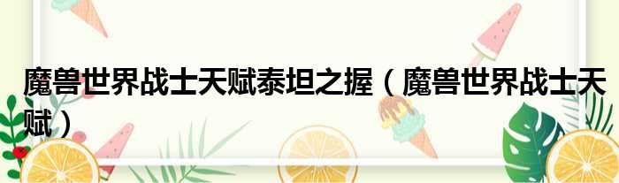 大家好,今天小六子来为大家解答以下的问题,关于魔兽世界战士天赋泰坦之握,魔兽世界战士天赋这个很多人还不知道,现在让我们一起来看看吧!