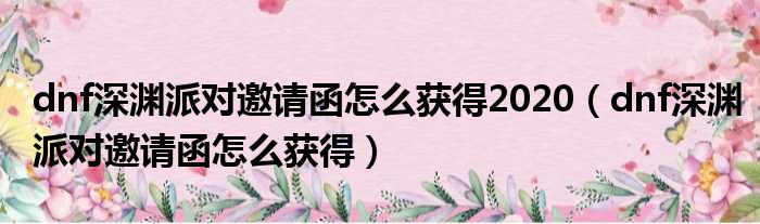 1、DNF深渊派对邀请函怎么获得呢?很多的玩家不清楚吧!下面我们一起来看详细的方法介绍。