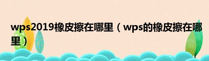 大家好,今天小六子来为大家解答以下的问题,关于wps2019橡皮擦在哪里,wps的橡皮擦在哪里这个很多人还不知道,现在让我们一起来看看吧!