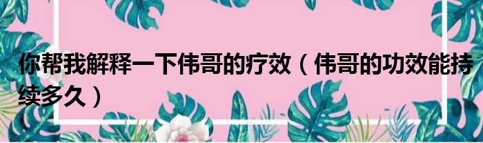 大家好,今天小六子来为大家解答以下的问题,关于你帮我解释一下伟哥的疗效,伟哥的功效能持续多久这个很多人还不知道,现在让我们一起来看看吧!