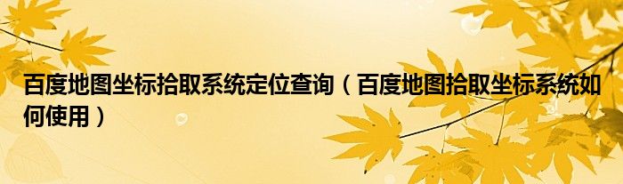 大家好,今天小六子来为大家解答以下的问题,关于百度地图坐标拾取系统定位查询,百度地图拾取坐标系统如何使用这个很多人还不知道,现在让我们一起来看看吧!