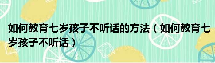 大家好,今天小六子来为大家解答以下的问题,关于如何教育七岁孩子不听话的方法,如何教育七岁孩子不听话这个很多人还不知道,现在让我们一起来看看吧!