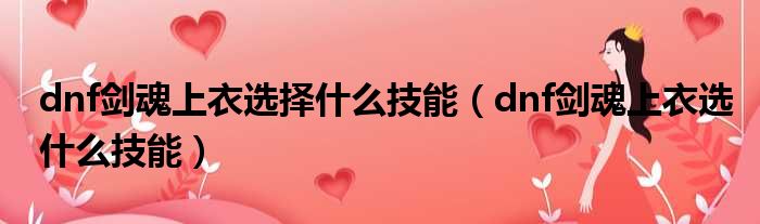 大家好,今天小六子来为大家解答以下的问题,关于dnf剑魂上衣选择什么技能,dnf剑魂上衣选什么技能这个很多人还不知道,现在让我们一起来看看吧!