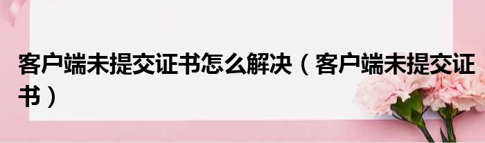 大家好,今天小六子来为大家解答以下的问题,关于客户端未提交证书怎么解决,客户端未提交证书这个很多人还不知道,现在让我们一起来看看吧!