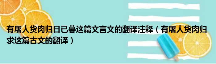 大家好,今天小六子来为大家解答以下的问题,关于有屠人货肉归日已暮这篇文言文的翻译注释,有屠人货肉归 求这篇古文的翻译这个很多人还不知道,现在让我们一起来看看吧!