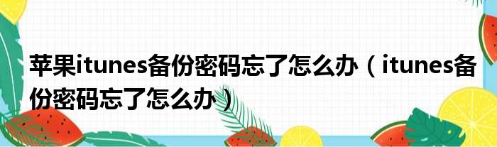 大家好,今天小六子来为大家解答以下的问题,关于苹果itunes备份密码忘了怎么办,itunes备份密码忘了怎么办这个很多人还不知道,现在让我们一起来看看吧!