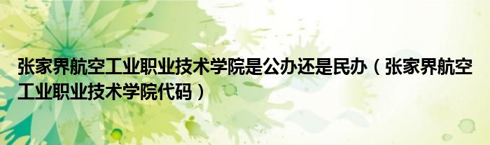 大家好,今天小六子来为大家解答以下的问题,关于张家界航空工业职业技术学院是公办还是民办,张家界航空工业职业技术学院代码这个很多人还不知道,现在让我们一起来看看吧!