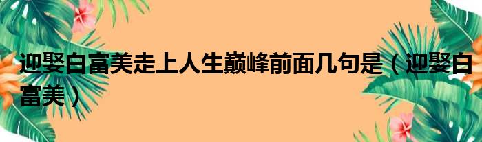 大家好,今天小六子来为大家解答以下的问题,关于迎娶白富美走上人生巅峰前面几句是,迎娶白富美这个很多人还不知道,现在让我们一起来看看吧!