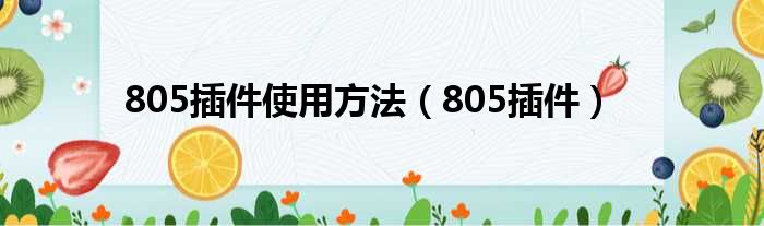 大家好,今天小六子来为大家解答以下的问题,关于805插件使用方法,805插件这个很多人还不知道,现在让我们一起来看看吧!