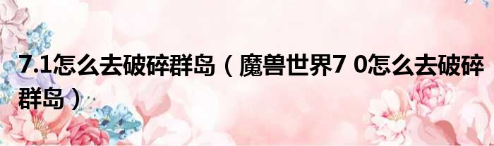 大家好,今天小六子来为大家解答以下的问题,关于7.1怎么去破碎群岛,魔兽世界7 0怎么去破碎群岛这个很多人还不知道,现在让我们一起来看看吧!