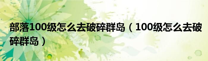 大家好,今天小六子来为大家解答以下的问题,关于部落100级怎么去破碎群岛,100级怎么去破碎群岛这个很多人还不知道,现在让我们一起来看看吧!