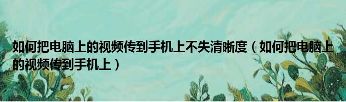 大家好,今天小六子来为大家解答以下的问题,关于如何把电脑上的视频传到手机上不失清晰度,如何把电脑上的视频传到手机上这个很多人还不知道,现在让我们一起来看看吧!
