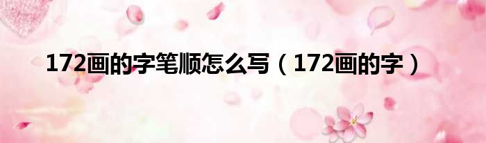 大家好,今天小六子来为大家解答以下的问题,关于172画的字笔顺怎么写,172画的字这个很多人还不知道,现在让我们一起来看看吧!