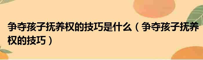 大家好,今天小六子来为大家解答以下的问题,关于争夺孩子抚养权的技巧是什么,争夺孩子抚养权的技巧这个很多人还不知道,现在让我们一起来看看吧!