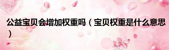 大家好,今天小六子来为大家解答以下的问题,关于公益宝贝会增加权重吗,宝贝权重是什么意思这个很多人还不知道,现在让我们一起来看看吧!