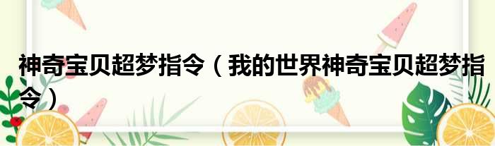 大家好,今天小六子来为大家解答以下的问题,关于神奇宝贝超梦指令,我的世界神奇宝贝超梦指令这个很多人还不知道,现在让我们一起来看看吧!
