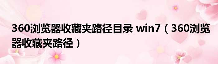 大家好,今天小六子来为大家解答以下的问题,关于360浏览器收藏夹路径目录 win7,360浏览器收藏夹路径这个很多人还不知道,现在让我们一起来看看吧!