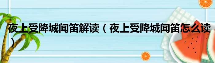 大家好,今天小六子来为大家解答以下的问题,关于夜上受降城闻笛解读,夜上受降城闻笛怎么读这个很多人还不知道,现在让我们一起来看看吧!