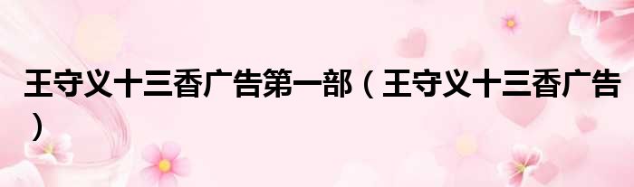 2、可以在视频网站或者百度视频上搜索“王守义十三香广告”,第一个应该就是最新版。