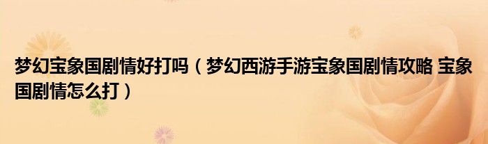 大家好,今天小六子来为大家解答以下的问题,关于梦幻宝象国剧情好打吗,梦幻西游手游宝象国剧情攻略 宝象国剧情怎么打这个很多人还不知道,现在让我们一起来看看吧!