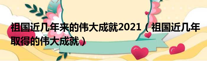 大家好,今天小六子来为大家解答以下的问题,关于祖国近几年来的伟大成就2021,祖国近几年取得的伟大成就这个很多人还不知道,现在让我们一起来看看吧!