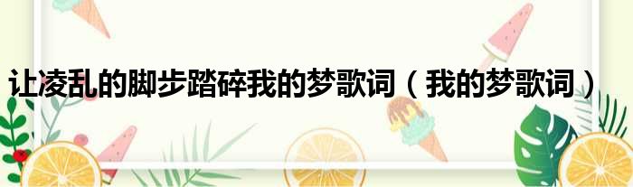 大家好,今天小六子来为大家解答以下的问题,关于让凌乱的脚步踏碎我的梦歌词,我的梦歌词这个很多人还不知道,现在让我们一起来看看吧!