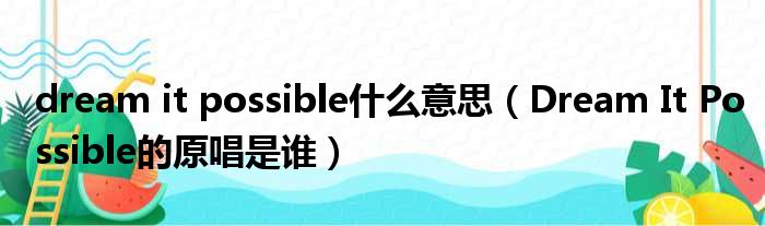 大家好,今天小六子来为大家解答以下的问题,关于dream it possible什么意思,Dream It Possible的原唱是谁这个很多人还不知道,现在让我们一起来看看吧!