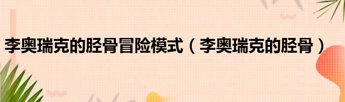 大家好,今天小六子来为大家解答以下的问题,关于李奥瑞克的胫骨冒险模式,李奥瑞克的胫骨这个很多人还不知道,现在让我们一起来看看吧!