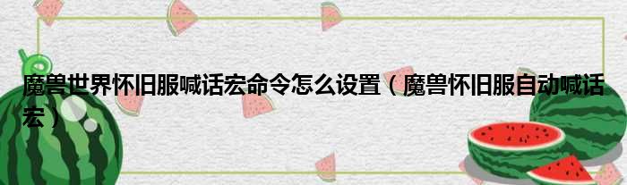 大家好,今天小六子来为大家解答以下的问题,关于魔兽世界怀旧服喊话宏命令怎么设置,魔兽怀旧服自动喊话宏这个很多人还不知道,现在让我们一起来看看吧!